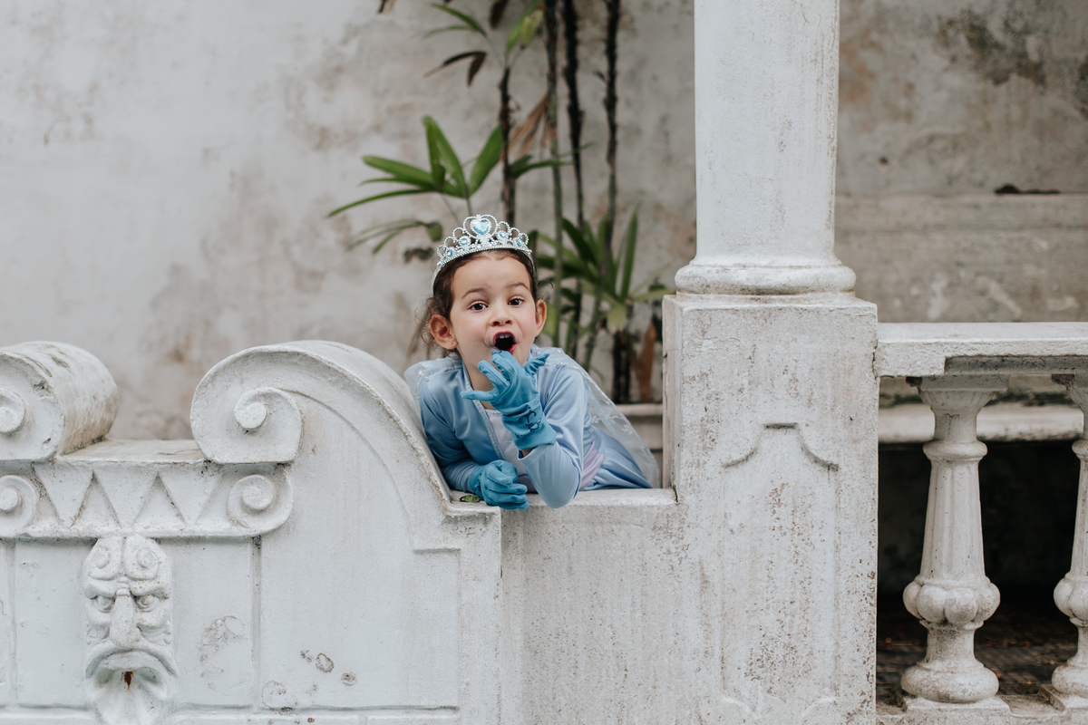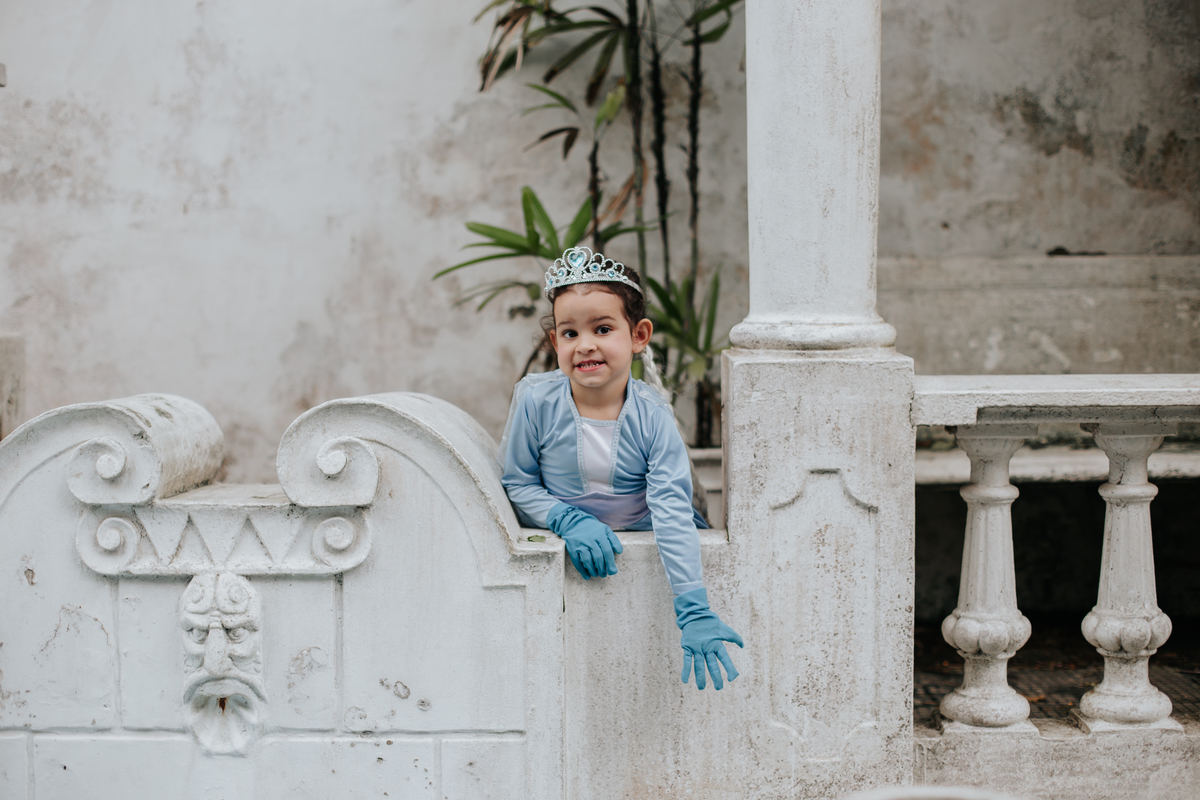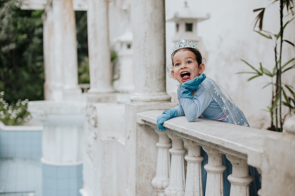 Lis queria um ensaio para comemorar seus 5 aninhos. Mas não era qualquer ensaio, era o da Elsa em um castelo.
