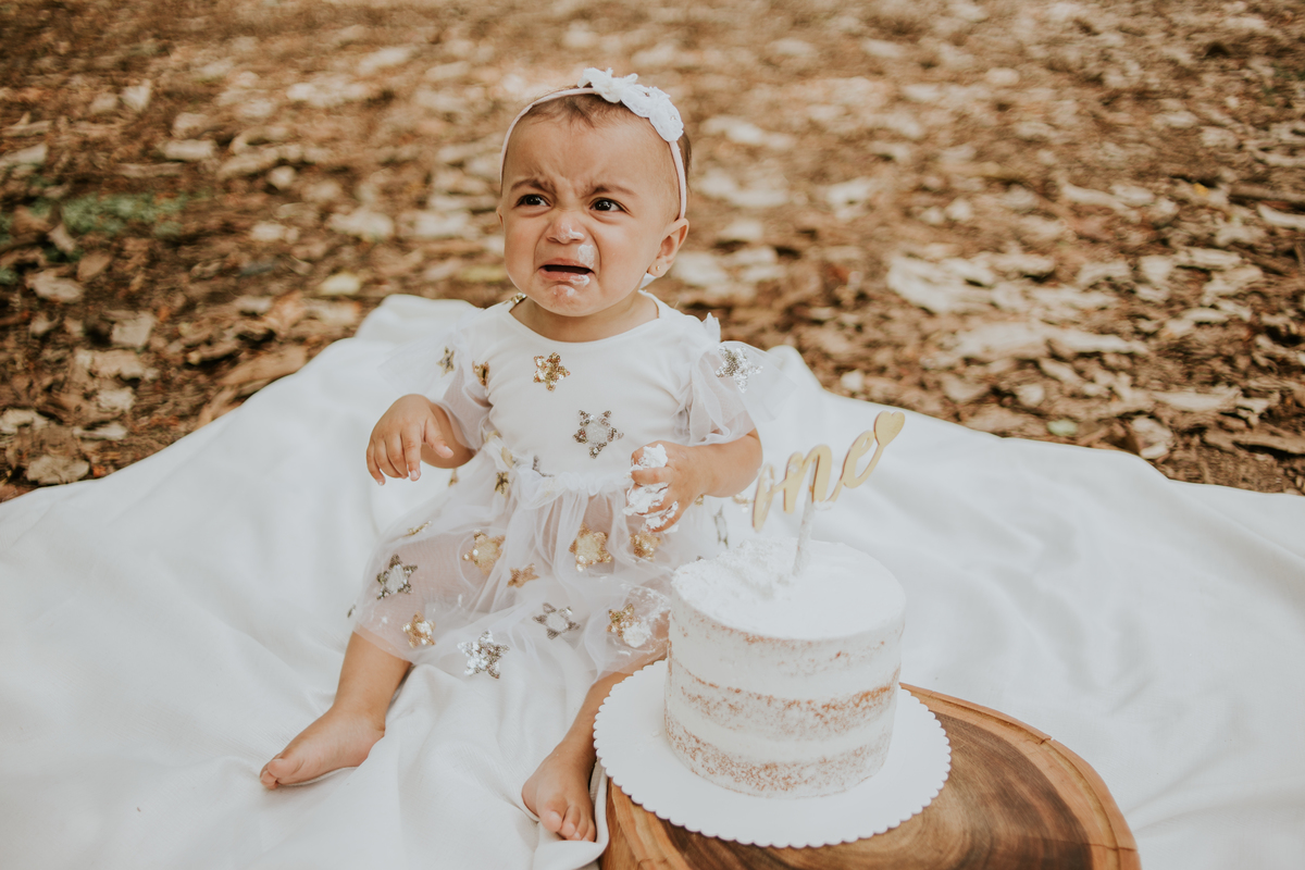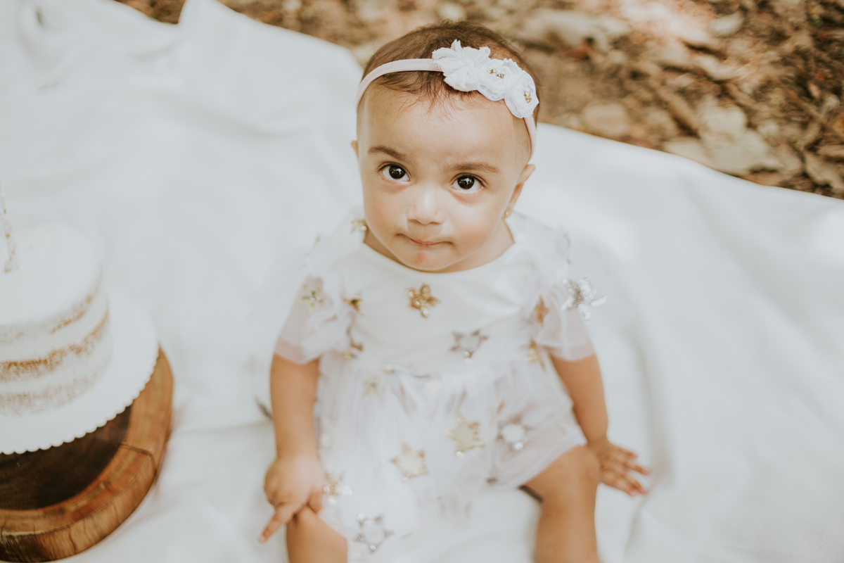Maria Cecília não quis fazer amizade com o bolo não, e tudo bem, pois cada bebê tem um jeito. Por vezes não gostam das texturas, mas isso não impede de se fazer um ensaio super fofo. Maria Cecília, você é muito linda!!!! 🧡